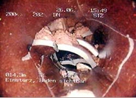 Bei einer Kamerabefahrung nicht sichtbarer Schaden: Bei Schäden der Zustandsklasse 0 bis 2 nach ATV M149 steht sofort bis mittelfristig eine Sanierung an, ein geringer Schaden der Zustandsklasse 3 ist weiter zu beobachten. Unabhängig von der Zustandsklasse sind Abwasseranlagen auch bei Wurzeleinwuchs und Fremdwassereintritt umgehend und wirkungsvoll zu sanieren. Bei den früher im Grundstücksbereich ausschließlich verwendeten Steinzeugrohren standen dauerhafte Dichtungen erst seit der zweiten Hälfte der sechziger Jahre zur Verfügung. Auch die Schächte sind in vielen Fällen, insbesondere bei älteren Grundstücksentwässerungsanlagen, ebenfalls undicht.