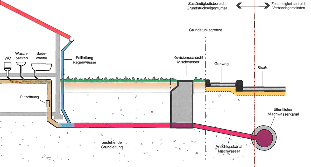 Mischsystem (Schmutzwasser und Oberflächenwasser gehen in einen gemeinsamen Kanal)